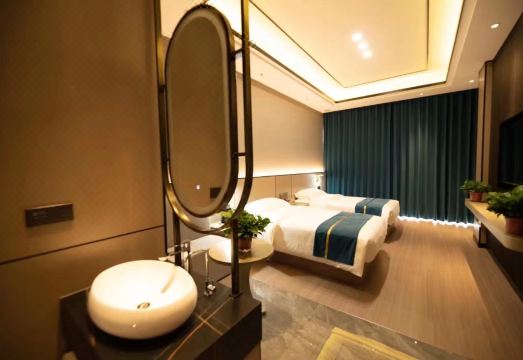 This hotel really surprised me. I thought that I wouldn’t have a special experience in a hotel with such a location. But when I took the elevator to the third floor, I found that the sanitary environment was very good and the decoration looked good. It is very technological. On the day it was more modern, I booked a double room. When I arrived, I was told that the double room was no longer available. Then I upgraded it for free. The bathtub room may be a bit larger. After entering the room, I found that no matter the lighting, The design, environment and facilities are all very good, and the price/performance ratio is very high. Everything is intelligent, and Xiaodu can be operated by voice, which makes me very satisfied. However, the only thing is that the sound insulation is not particularly good, but that's it. For this price, friends who can tolerate it can make a trade-off. Anyway, I personally think that the price/performance ratio is very high. This hotel is still very good. The most important thing is that it is really close to the airport, less than a minute away. At night You can get there in maybe six or seven minutes. There aren't many airports in Baotou, so it's enough to go there an hour early. It only takes half an hour to get there slowly. It's very good.