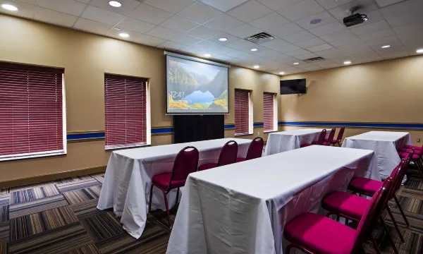 We have a large heated seasonal outdoor pool. There is also meeting room and banquet hall facilities available onsite.