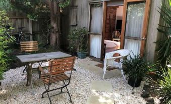 The Garden Cottage is a self contained studio cottage snuggled in the garden between a sun filled deck with recliner chairs and an al fresco eating area. It sleeps two people on a queen bed, linen provided. It has a fully appointed kitchen with stove, microwave / combustion oven, fridge, and expresso machine. It has a full bathroom as well as an outdoor secluded shower, a TV with Apple TV and Netflix, overhead fan and heater.About pets:Pets allowed: limit 1 total.About checkOut:Check out before 11:00 AM.About children:Children allowed: ages 0-17.About checkIn:Check in after 4:00 PM.About smoking:Smoking is not permitted.About events:No events allowed.