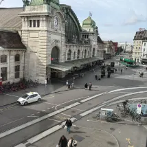 The Basel train station is under the window. We were given a room on the fifth floor facing the train station door with a view. There are noises during the day and night, but it is not very noisy.