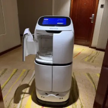 I like this robot delivering things—- other services are good— but i am not very satisfied by the breakfast!