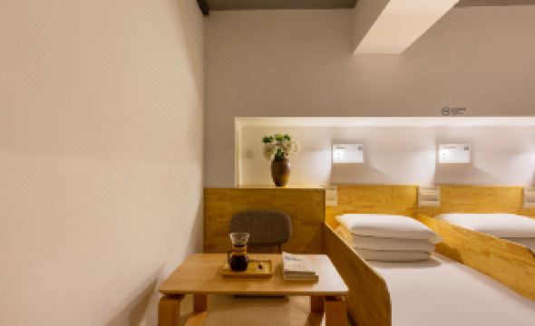 A modern place that retains a cozy, traditional aesthetic inside. The rooms aren’t very large, but they’re just the right size to ensure comfort for guests. I thought it was a great touch that each cubicle has adjustable lighting, allowing you to set the perfect brightness. Below the hotel, there’s a trendy restobar serving Western-style food—though a bit pricey. I ordered a small grilled platter, and it was quite good. My suggestion for the kitchen? Adding chimichurri as a condiment would really enhance the flavor of the sausages.