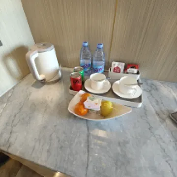 An absolutely fantastic experience! Upon arrival, the staff were incredibly welcoming and helped with my luggage, even escorting me all the way to my room. The room itself was very clean. The airport shuttle service was super convenient, and the hotel's proximity to the airport was a huge plus. The complimentary late-night snack was a thoughtful touch. Overall, the service was superb, and the facilities were very new.