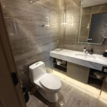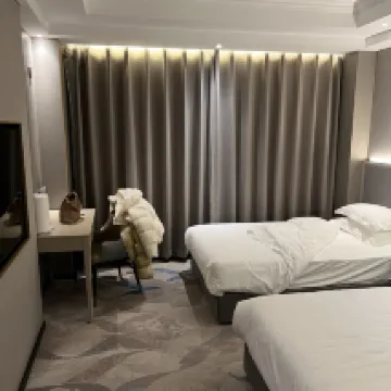 Our stay exceeded expectations! The hotel service was incredibly thoughtful. As soon as our taxi pulled up to the entrance, a doorman immediately opened the door and helped with our luggage. The front desk staff were friendly and welcoming. After checking in, the doorman personally escorted us and our luggage to our room. A huge thank you again! 🙏🏻🙏🏻🙏🏻 In the evening, from 10 PM to midnight, there's a late-night snack service on the first floor (we didn't get to try it as we had an early flight the next day and went to bed early). The room was clean and hygienic, and the three-layer soundproof windows were particularly effective – we couldn't hear any car noise or plane take-offs outside. The airport shuttle in the morning was clean and comfortable. Overall, this hotel is highly recommended!