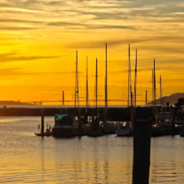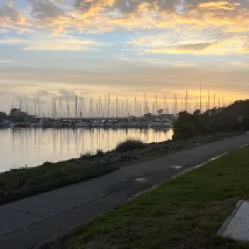 It's suddenly quiet here, not as noisy as the city... It's next to the port, and it's peaceful when the sun goes down.