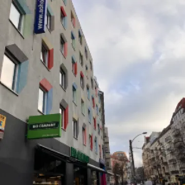 The location is very good being 5 min walk from Ostkreuz train station. It is a direct line to Messe Nord where the bus station and FlixBus stop is. Easy to get public transportation into the cities. There are many shops, supermarkets and eating places nearby. Vegan kebab shop directly opposite.