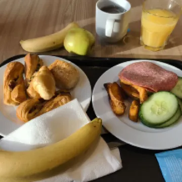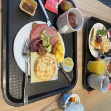 The hotel room was quite spacious for European standards. The breakfast spread was generous, and both check-in and check-out were very convenient.