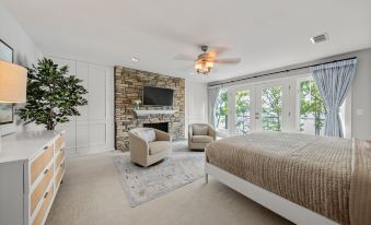 - Master Suite (Upper Level) – King bed, walk-in closet, spa bath with double vanity, 2-person stone shower, soaking tub overlooking the lake, private balcony, plus 2 twin trundles for kids that can be placed in any room.