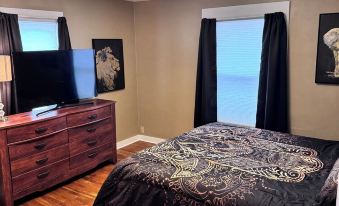 This property features three comfortable bedrooms (one king, two queens) with plush mattresses, fresh linens, and blackout curtains. The spacious living area includes HDTV and Wi-Fi, while the fully stocked kitchen makes home-cooked meals simple. For active guests, the home gym setup provides an easy way to keep up with your workouts, and families and pet owners will appreciate the backyard with patio seating and fire pit.