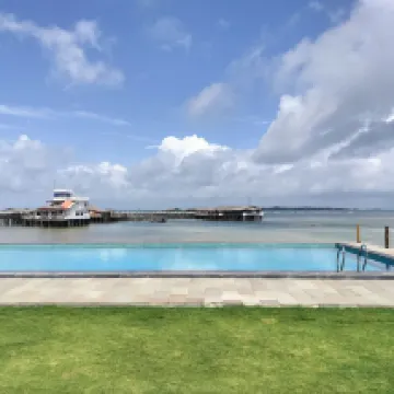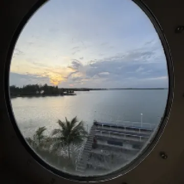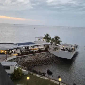 Absolutely incredible hotel experience! Stunning room with balcony overlooking the Singapore Strait. Several activities you can do, from eco golf to fishing and a movie night projected on to the side of the ship. The tour was excellent and all of the staff were great. I hired a motorbike through reception so I could explore the island - all organised very well, although 3x more expensive than say Thailand, Vietnam etc. The restaurant has a limited menu unless you are happy with local, mainly seafood dishes with a couple of western options and pizza. The drinks are expensive already, then they add 21% service and tax, again, significantly higher than what you would pay in similar SE Asian countries but I heard typical for Bintan. Buy your drinks from the convenience store in the ferry terminal - 4x cheaper than the hotel bar restaurant. They did say however that their profits are given to charity. Overall, I had an incredible stay here, excellent value, excellent location if you want to chill or explore the island (not suitable for walking) or just relaxing by the beautiful infinity pool overlooking the ocean. Highly recommended, will 100% return and no need to look at any other hotel on Bintan!
