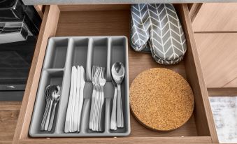 Our kitchen is fully equipped with various cooking appliances and generous counter space, perfect for home cooks. If you prefer dining in, enjoy the convenience of preparing your favorite meals.