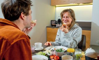 Excellent staff. Compact ski apartment with small kitchen. Lovely spa area. No freezer and multifunction microwave only. Sofa beds makes for uncomfortable sofa and balcony furniture needs cushions. Hot inside. View disppointing ( car park behind river). Would be great location for skiing as near lift. Breakfast a nice surprise.