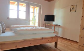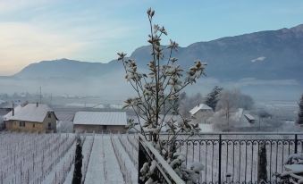 Chambre de belles dimensions, avec terrasse pour profiter de la magnifique vue sur les vignes. À proximité de Bozalno, nous étions au centre ville en 15 minutes en vélo. Bolzano, la ville du vélo! Très bon et varié petit déjeuner, tout est d’une grande propreté, et Daniela nous a fort bien accueillis. Bref, un excellent séjour de 3 nuits !