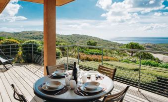 We stayed here for a few nights on our honeymoon. Villa is well appointed (but expect that for the price). Would have expected a bath (only a shower) and a more modern TV allowing Netflix / screen mirroring, or sunbeds on the private terrace. I also agree with another reviewer that for the prices, coffee and salt could be left in the kitchens. In addition, we have a cleaner at home, and we were on honeymoon, so I didn’t particularly enjoy sweeping the floors (as instructed to do so) on the morning of checkout before a “Villa inspection” at checkout. Again, not at this price point. I had looked at the website before we booked and it looked as if more amenities were available, but those described are just part of the local area (and by local still need a car to drive there). So the nearest restaurant (excluding 5-10 minute walk to a campsite pizzeria which we did visit and enjoy on an evening we wanted to drink) is a car drive away. We were keen to enjoy some local Corsican dishes so my husband had to drive most nights to Bonifacio , but for us (living in a city) we made sure we were back on our way home by 9 so at to not be facing the sharp bends of the mountain road back to the villa in the dark. Details I know, but may be relevant for you, if like us you want something a bit secluded, but not so inconvenient to experience other aspects of Corsica without some inconvenience.