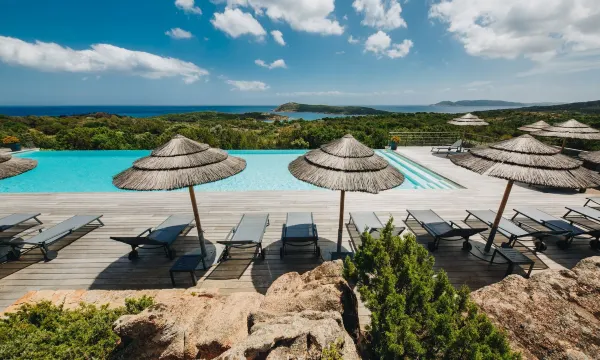 we have been to Les Terraces for the first time for a family holiday (6 people) and it was amazing. We stayed in a villa within the sea view and it was breathtaking! The resort is large, quiet and giving a lot of space. The swimming pool is huge (30x10m) and you can have a beautiful view on to the Rondiara Beach (5min walk) and Sardinia coast! Villa is perfectely equipped and location is excellent - the whole south coast topics are close by. Staff is very friendly, as well as all the people there. It is really worthwhile staying there.