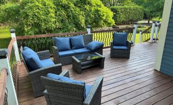 The Ship Captain's Estate was built in 1865 in the growing agricultural and ship-building village of East Boothbay, Maine. Perfect for family gatherings or friend reunions, the 4 bedroom/ 3 full bath home has a gourmet kitchen, a grand staircase, and a wrap-around deck. Situated high on a rise, nestled between the Damariscotta River and Linekin Bay, the home has a beautifully landscaped yard with a wisteria - covered gazebo and water views from the Widow's Watch.