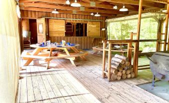 This was an amazing venue for the reunion of two families and the best vacation ever! Plenty of places to sleep, nice big kitchen and dining area, air conditioned bunk house, fire pit and room for the kids and dogs to play! David, our Host, was an incredible communicator and very responsive to our needs. Teepees were clean and big, and showers were closeby. To note: We were pleasantly surprised to see a refrigerator and freezer in the kitchen, and a/c in the bunk house. Also surprised how fast it cools off once the sun sets; and we were there the last week of July, so bring warm bedding and sweatshirts/pants even in summer. Very few bugs, but there were mosquitos early evening, but minimally so. As a side note, the dump is only open M-Saturday 9-6, so plan accordingly when needing a trash takeout. All in all, I give this property a 5-star plus rating!