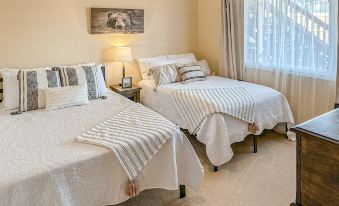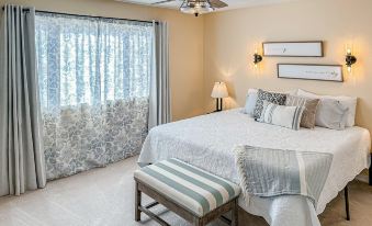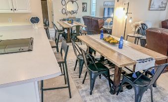 Thoughtfully upgraded, the sun-soaked interior features a coveted open layout. Whip up favorite recipes in the well-equipped kitchen, then serve special meals at the kitchen bar or the elegant dining table. The warm and inviting living area offers the ultimate space to unwind with a TV show. Both bedrooms feature Roku TVs and a Pack ‘n Play is provided for those traveling with little ones. Central air conditioning and a washer/dryer add a layer of comfort during your stay.