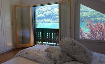Right on the water with lots of privacy. We had an incredibly good time in this beautiful house. You can walk to Brienz in 20 minutes at the train station, at the boat rental, at the harbour, at the zoo and much more. There is a local brewery less than 5