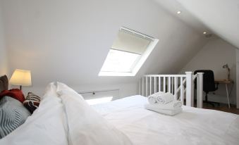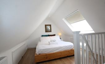 Enjoy the two very comfy double beds. One main double bedroom on the lower floor and a cosy open mezzanine loft room upstairs with only reduced head height towards the eaves.About pets:No pets allowed.About checkOut:Check out before 10:30 AM.About children:Children allowed: ages 0-17.About customRules:No loud noise after 10 pm..About checkIn:Check in after 4:00 PM.About smoking:Smoking is not permitted.About minBookingAge:Minimum age to rent: 18.About events:No events allowed.