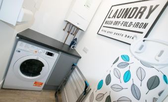 Each apartment has a washing machine/dryer, hairdryer, iron, and ironing board.