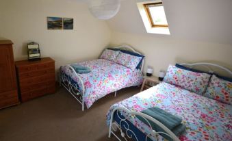 The house is dog friendly with an enclosed garden, two upstairs bedrooms plus an additional family room downstairs with a double sofa bed.