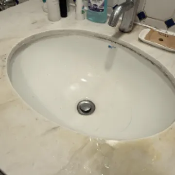 There was mold around the bathroom faucet, a small cockroach, and the toilet seat was not clean.