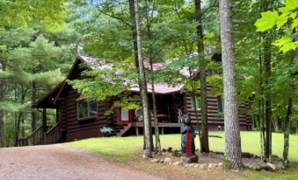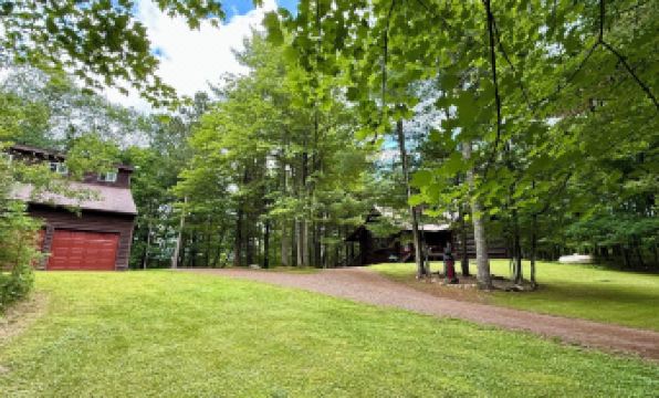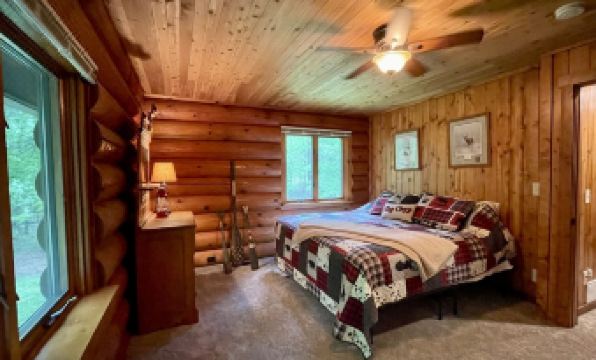 Fully renovated log cabin on wooded property PLUS access community resort amenities including indoor pool, fitness, sauna, tennis courts, bocce courts, lakes, piers, beaches with beach houses and two championship 18-hole golf courses and on-stie country club. Cross Country, hiking and shoeshoe trails directly from the cabin. ATV access directly from the cabin. Vehicles + equipment not provided).