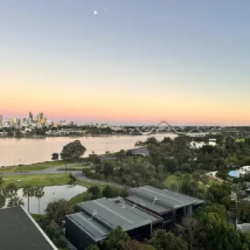 Clean and comfortable room, very cosy with a nice bathtub and partial view of the river. Nice walk along the park across hotel to Optus stadium and Matagarup Bridge.