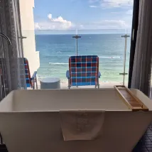 Check in was smooth and I come for the design of the hotel. Location is Right at the beach and the Blue Line park train station. The swimming pool is superb at the roof top with stunning ocean view. Appreciated the floor manager who he has also studied in Australia had offered some chilled beverages to welcome us added a heart warming experience in our stay! Until next time we will see again!