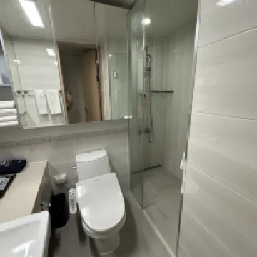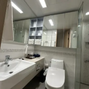This is definitely the right choice for business travel! The hotel has a dedicated business center, and printing documents and connecting to Wi-Fi were seamless. The desk and chair in the room are spacious, and the lighting is perfect for working. There are several chain restaurants nearby, so you don't have to worry about finding food even if you work late. They also offered a late check-out service, which really helped me with my luggage storage problem. The service was incredibly thoughtful.