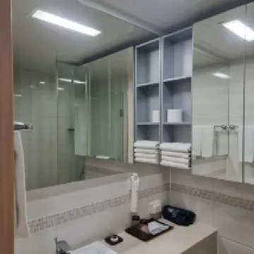 We booked different room types for our two-night stay; the first night was a double room, and the second was a twin room. The room amenities felt a bit dated, and the vanity in the twin room was particularly low. Despite the advertised 'Chinese guest courtesy,' I didn't encounter any Chinese-speaking staff at the front desk during either of my check-ins. We had to rely entirely on gestures!