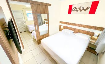 Tudo como anunciado; quarto duplo (flat) três banheiros e ar em Todo ambiente, tudo bem pensado e acomoda 5 pessoas tranquilamente e o melhor tem acesso ao clube 24hrs por dia com o cartão de hospedagem. Clube enorme e com mais de 10 piscinas, ofurô, cascata, escorregas, piscina com onda etc…