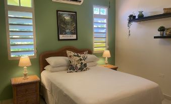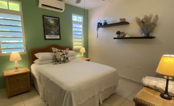 Villa 2 at Casa Aguas Azules is a 2-bedroom, 2-bathroom beachfront house on Corcega Beach in Rincon, Puerto Rico. It offers direct access to the beach and features a beachfront pool. The interior is modern Caribbean-style adorned, showcasing locally sourced art and distinctive pieces. The house’s elevation above a large stone wall imparts a classic Mediterranean ambiance. Casa Aguas Azules provides guests with a private and upscale Caribbean experience. The pool and beach are shared with the Mansion and Villa 1.