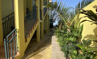 The stairs that went down to the beach, the only way to get there, had no railings, the stair treads were very narrow making getting up and down somewhat like climbing a ladder. After a week there and me registering a complaint, the owner had his handyman come and put up railings around the platform and a railing down the stairs. that made it safer but he still needs to put in wider stair treads as these are way to narrow. It is a simple and easy fix he just needs to do it. He did refund me a little $ for the inconvenience of no railings. And for the $$$$ a week I was paying for a 2 bedroom 2 bath condo that is certainly not asking much. This place is definitely overpriced given the many other areas to rent in Rincon that also boast magnificent views, pool, private beach. Definitely look around before choosing this villa/condo.