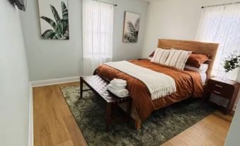 The bedrooms are designed for ultimate comfort with two queen beds and one full-size bed. Each room is equipped with cozy sheets and pillows to ensure a restful night’s sleep. Full-length mirrors, hooks, and plenty of closet space are provided for your convenience.