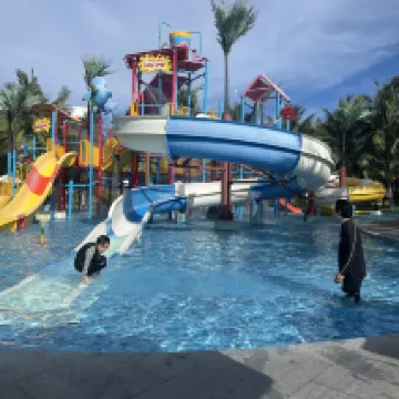 I came with just my second son, and we thoroughly enjoyed the two pools, the beach, and the aqua park.