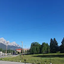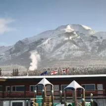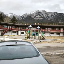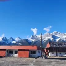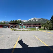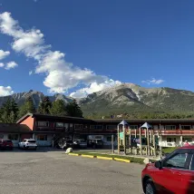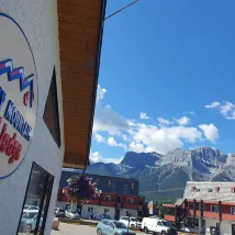 We stayed for 4 nights. The lodge is perfect from Canmore, 19min stroll. 5 mins walk to the supermarket. We had a good room on the ground, not too noisy, good night's sleep. We had a microwave and fridge, staff loaned us some plates and cutlery, so we made use of the BBQ on 2 nights. They have an excellent laundry room, only $1.5 for each washing machine and dryer. The staff were so helpful, utter delight. Grounds staff make sure the lodge looks its best. Would stay again.