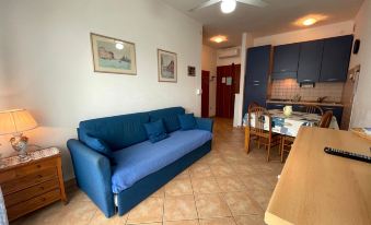 One-bedroom apartment for up to six guests, located on the 3rd floor of a building with lift and a shared outdoor pool, just 340mt from the beach. It is formed of an open plan kitchenette, a living/dining room with a double sofa bed, a balcony with awning, a bedroom with a double bed plus a bunk bed, and a complete bathroom with a shower box and a washing machine. It comes with one uncovered parking space. *Pets are not allowed. A/C is available at an additional cost (check below).°Swimming pools are open seasonally (mid June/early September): exact dates may vary due to weather or maintenance.