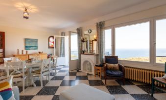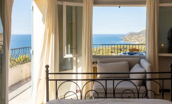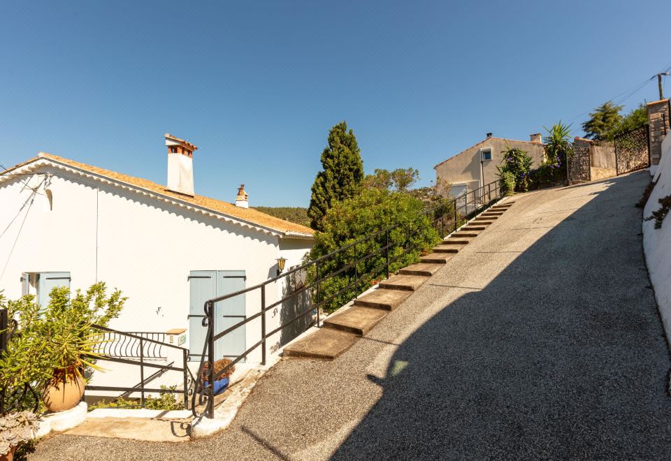 2-family house "Chantelyre", surrounded by trees. Above Carqueiranne, in the district of Californie, in a quiet, sunny position, 3.4 km from the sea, 3.4 km from the beach. For shared use: well-kept terraced garden (fenced) with plants and flowers, public parking on the road. Supermarket 4.2 km, shopping centre 9.6 km, restaurant 4.5 km, bar 4.5 km, bakery 4 km, café 4.5 km, bus stop "Anémones" 850 m, sandy beach "du Port Helene" 3.4 km. Sports harbour 4 km, golf course (18 hole) 12 km, surf school 3.7 km. Nearby attractions: Magic world 5.5 km, kiddy Park 6 km, Jardin Olbius Riquier 8.8 km. Please note: car recommended. The keys‘ handover takes place by the agency Interhome in Hyères le Port. Additional accommodations can be booked. 2-room apartment 65 m2 on 1st floor. Bright, comfortable furnishings: living room with 2 sofabeds (120 cm, length 190 cm), dining table and TV (flat screen), air conditioning. Exit to the terrace. 1 room with 1 french bed (160 cm, length 190 cm), fan. Exit to the terrace. Kitchen (4 hot plates, oven, dishwasher, toaster, kettle, microwave, freezer, electric coffee machine). Exit to the terrace. Bathroom, sep. WC. Electric heating, air-conditioning. Terrace 11 m2. Terrace furniture. Marvellous view of the sea. Facilities: washing machine, dryer. Internet (WiFi, free). Please note: TV only FR. Smoke alarm. Offer by a private individual according to Art. 155, IV of CGI.
