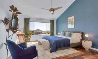 ⋑ Master bedroom: king bed, Smart TV, walk-in closet, and dedicated workspace