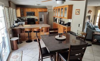 This cozy home has a full kitchen with dishwasher and the basic amenities you need to make any meal. You will find cookware, silverware, coffeemaker, microwave and toaster. The home has A/C and ceiling fans in most rooms. The primary bedroom has an en suite bathroom. Both of the remodeled bathrooms have showers and granite countertops. Streaming services available with guests’ own account(s). There is a washer and dryer located in the garage if you need them. There is an indoor fireplace and an outdoor fire pit for cool winter nights. For guest that stay more then three week, there will be an additional clean fee of $150.00 every 3-4 weeks.