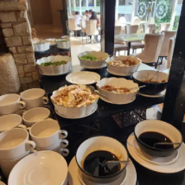 Room's table with ants all the time.....breakfast supposed ro start at 6am....but 620am still no one manned the eggs station......breakfast buffetspread is pathetic.....left over fruits and soup from last night dinner buffet.....bread variety not replenish...sliced bread stale....
