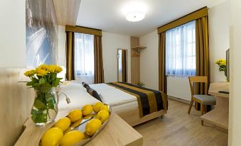At Garni hotel Castle Bridge, exceptional service and top-notch amenities create a memorable experience for guests.Complimentary internet access is available in the hotel to ensure you stay connected during your visit. Amenities at car hire offered by Garni hotel Castle Bridge simplify the organization of your excursions, tourist activities, and other adventures in Cesky Krumlov. For guests with their own vehicle, parking facilities are provided.Continuously receive the support you require through front desk amenities such as luggage storage and safety deposit boxes.At the hotel, their ticket service and tours is also capable of assisting with booking tickets and securing reservations for entertainment and adventures.Desire to unwind? Make the most of your visit at Garni hotel Castle Bridge with accessible amenities such as daily housekeeping. For the health and well-being of all guests and staff, smoking is restricted exclusively to assigned zones. Accommodations come equipped with all the conveniences required for a restful night's slumber.A selection of rooms at Garni hotel Castle Bridge come furnished with linen service to cater to your needs and comfort.A few accommodations at Garni hotel Castle Bridge also include unique design elements like a balcony or terrace.A few chosen rooms are equipped with television and cable TV to ensure guest amusement. In certain rooms, the hotel offers visitors access to a coffee or tea maker and mini bar. Garni hotel Castle Bridge offers a hair dryer and toiletries in the restrooms of specific accommodations. A delightful breakfast is the perfect way to begin your day, and at Garni hotel Castle Bridge, you can always indulge in a scrumptious meal on-site.