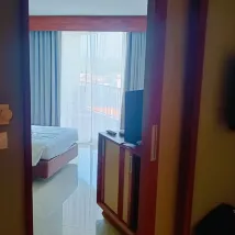 Hotel The hotel is very beautiful. Breakfast is good, there is a variety of bread, noodles, rice soup is very delicious. The location is good, just a short walk to the sea. The hotel staff are lovely, everyone welcomes you very well. The children love the swimming pool. There are two pools, only one is connected during the festival. The road outside is very congested. Stayed for two nights. Breakfast is not the same menu, lots of rice dishes, I like it very much.