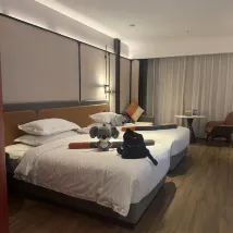 The hotel boasts an excellent location. With a subway entrance right downstairs, getting around is incredibly convenient. A pedestrian street directly opposite offers easy access to shopping and strolling, and the surrounding area is packed with great eateries and entertainment options. The hotel itself is very clean. The air conditioning is powerful, cooling the room down quickly, and the water pressure is strong, with hot water available almost instantly. A very convenient feature is the robot delivery service for takeout orders.