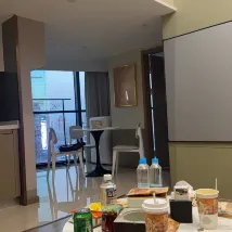 The room was really comfortable, and the location is unbeatable, right by Wuyi Square. The pedestrian street is right downstairs, with tons of night market snacks. The space was quite large and didn't feel cramped at all. They had everything: a giant projector screen, smart TV, washing machine – it was pretty comfortable. It was also great value for money; it wasn't too expensive for the three of us. The service and cleanliness were also excellent. I'd definitely recommend giving it a try!