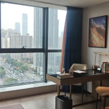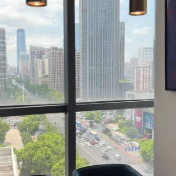 This city-view hotel is located right in the city center, next to Xiangya Hospital. The room features a large floor-to-ceiling window, offering an unobstructed view of Furong Middle Road. It's fully equipped with a washing machine, microwave, induction cooker, and more, truly blending the advantages of both an apartment and a hotel. The breakfast is also very rich, quite excellent for an apartment-style hotel, with both Western and Chinese options, as well as Changsha's special rice noodles. It's a really great hotel.