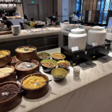 This hotel is located in the Dawangshan integrated tourism area on the southwest side of Changsha. The facilities are high-end, stylish, and luxurious, featuring a contemporary Western design. Upon check-in, I was unexpectedly upgraded to a suite, and the amenities inside couldn't have been better. The ocean park and ice and snow world are right outside the door, though you'll need a taxi to get to the film town. Breakfast was quite simple, and during peak holiday times, the dining area was incredibly crowded.
