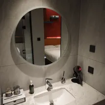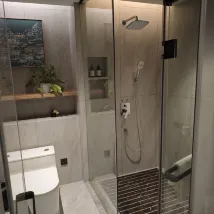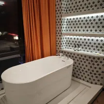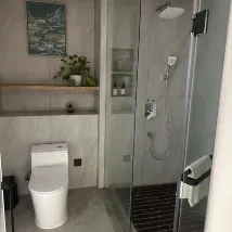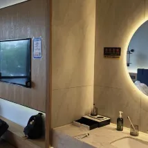 The room is spacious, well-equipped, and feels relatively new overall. The bathroom is large and convenient to use. A free bathtub cover is provided. The bathtub water temperature is comfortable. It feels great to watch a movie on the projection screen while soaking in the bathtub!